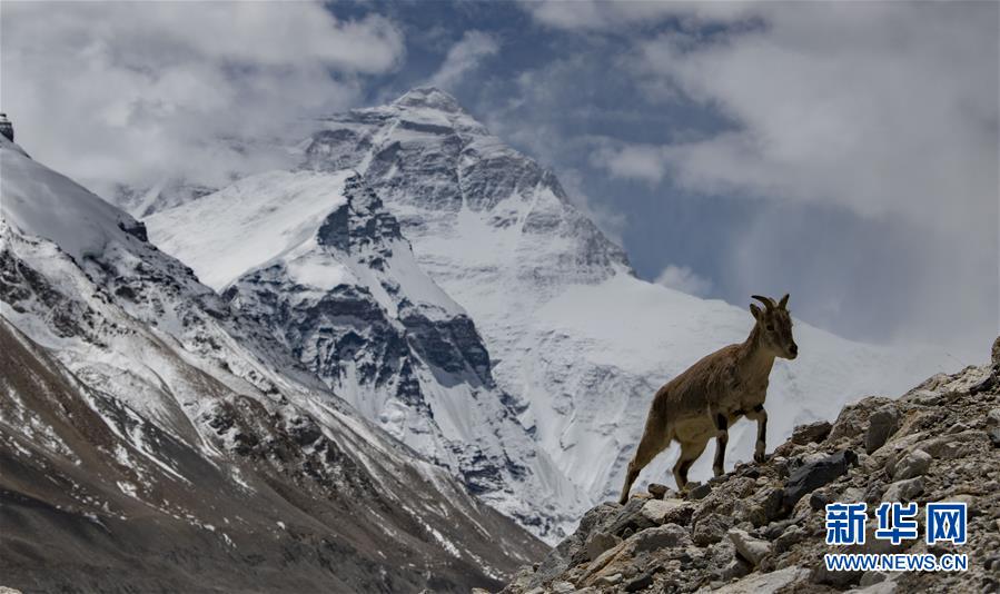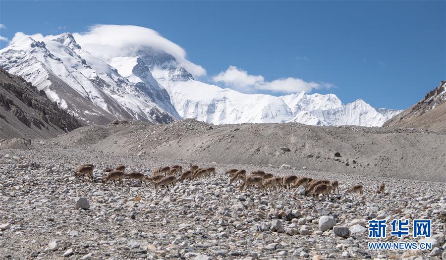 棲息在珠穆朗瑪峰國家級自然保護區(qū)內(nèi)的巖羊(5月8日攝)。新華社記者晉美多吉攝
