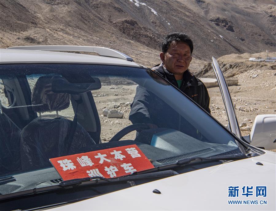 拉巴次仁駕駛巡護車在珠穆朗瑪峰國家級自然保護區(qū)內(nèi)巡邏(5月15日攝)。新華社記者孫非攝
