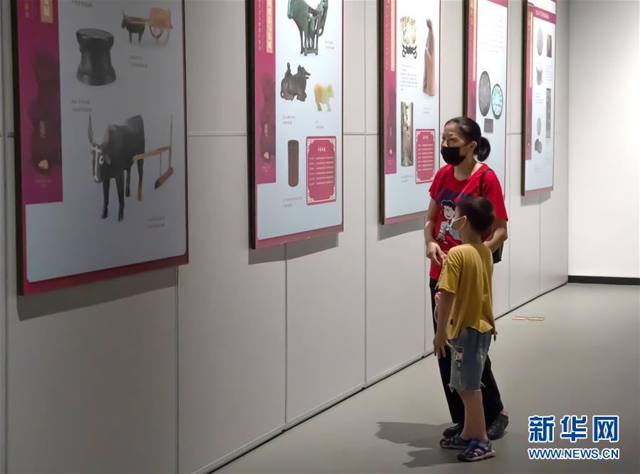 5月17日,參觀者在江西省博物館新館參觀。江西省博物館新館在做好疫情防控的前提下有序開(kāi)放,公眾可通過(guò)網(wǎng)上預(yù)約參觀游覽。新華社記者張浩波攝