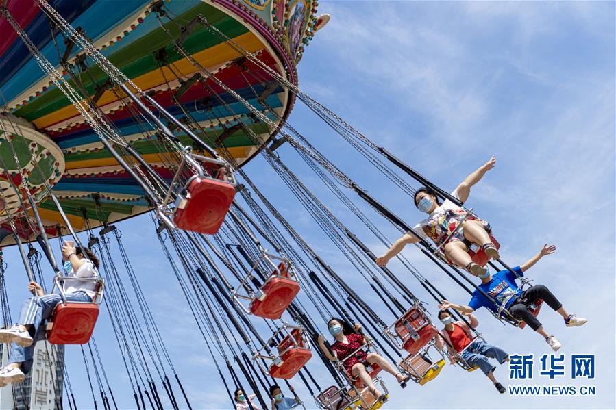 5月19日,游客在武漢歡樂谷內游玩。當日,湖北武漢歡樂谷重新開放。園區(qū)執(zhí)行客流量管控,游客需通過網(wǎng)上預約才能進入,室內場館暫不開放。新華社記者熊琦攝