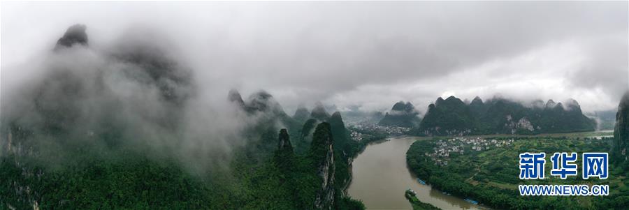這是在廣西桂林市陽朔縣興坪鎮(zhèn)拍攝的山水風(fēng)光(5月21日攝,無人機全景照片)?!吧n蒼森八桂,茲地在湘南。江作青羅帶,山如碧玉篸……”一千多年前,唐朝詩人韓愈寫盡桂林山水之美。初夏時節(jié),在廣西桂林市陽朔縣興坪鎮(zhèn),藍(lán)天白云下,煙雨朦朧中,桂林山水盡顯秀美。新華社記者周華攝