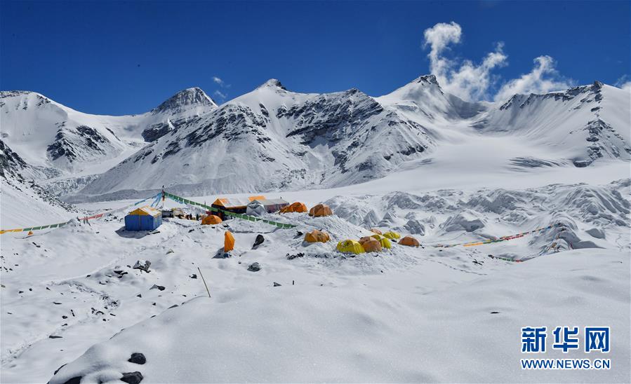 被大雪覆蓋的海拔6500米的珠峰前進(jìn)營(yíng)地(5月22日攝)。新華社記者晉美多吉攝