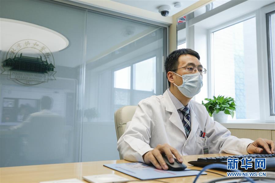 5月25日,北京協(xié)和醫(yī)院內(nèi)分泌科醫(yī)生張化冰在遠(yuǎn)程醫(yī)學(xué)中心出診。新華社記者張玉薇攝