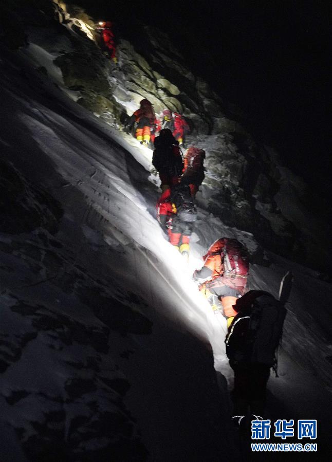5月27日,2020珠峰高程測(cè)量登山隊(duì)正在向珠峰峰頂進(jìn)發(fā)。新華社特約記者扎西次仁攝