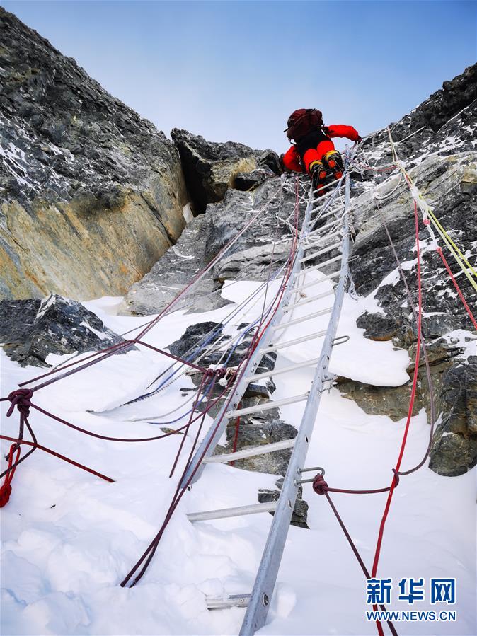 5月27日,2020珠峰高程測量登山隊正在向珠峰峰頂挺進(jìn)。新華社特約記者扎西次仁攝