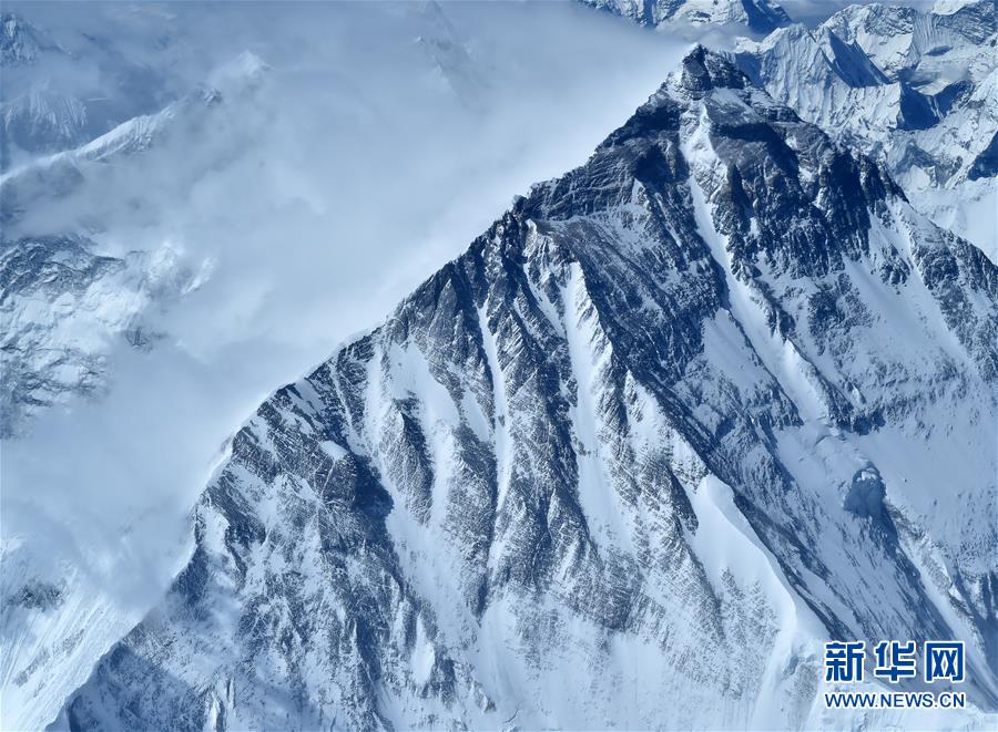 從空中拍攝的珠峰(5月14日攝)。新華社記者覺果攝
