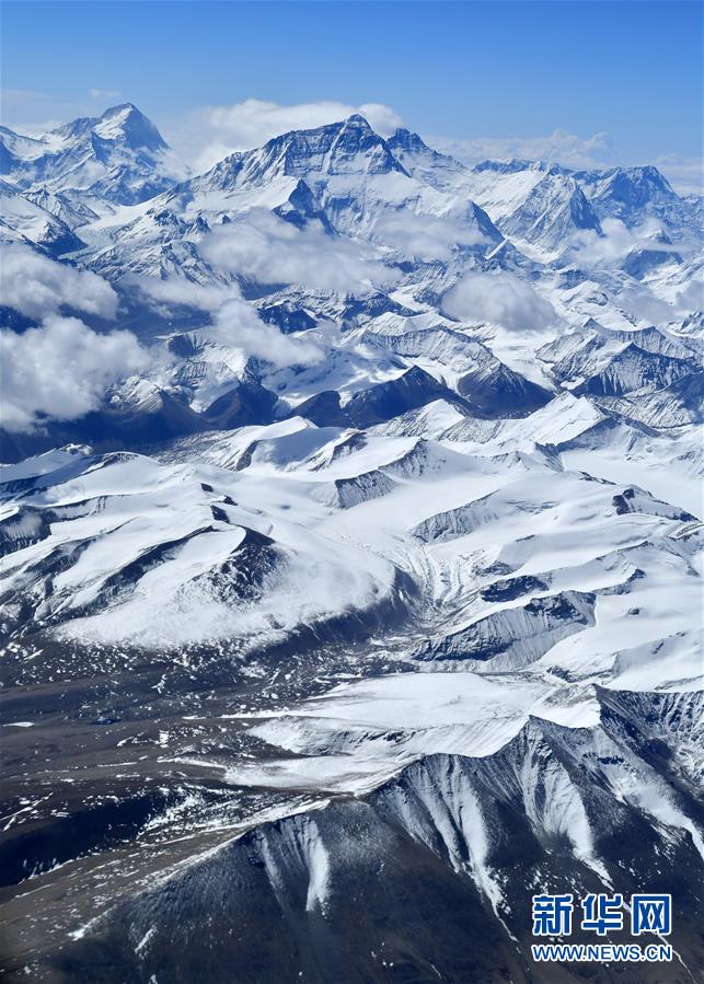從空中拍攝的珠峰(5月14日攝)。新華社記者覺果攝