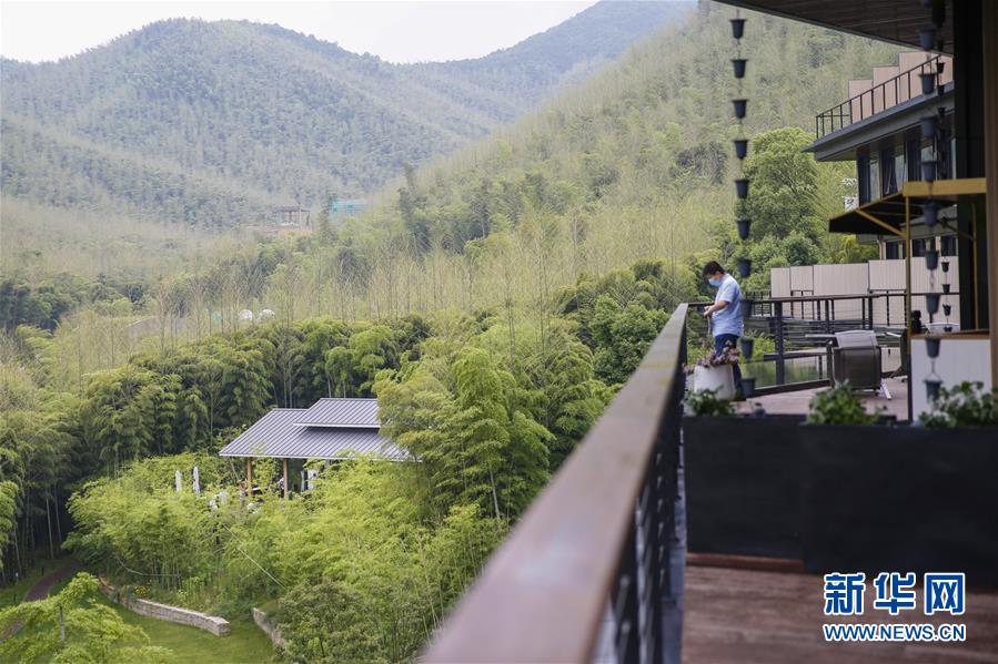 5月26日,一名游客在湖州慧心谷綠奢度假村休閑。新華社記者張玉薇攝