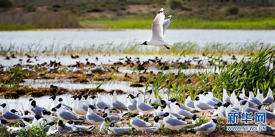 5月27日在陜西省神木市紅堿淖拍攝的遺鷗。陜西省神木市紅堿淖是中國最大的沙漠淡水湖,近年來隨著周邊生態(tài)環(huán)境改善,紅堿淖水位逐年提升,水域面積不斷擴大,每年四至八月,都會吸引大批遺鷗來此繁衍棲息,已成為遺鷗繁殖的重要基地。新華社記者陶明攝