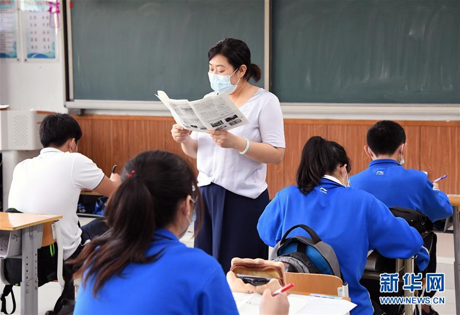 5月28日,北京市第十八中學(xué)的初三年級(jí)學(xué)生在上課。北京市第十八中學(xué)共有初三年級(jí)學(xué)生340余名,學(xué)校在做好初三年級(jí)學(xué)生中考文化課備考的同時(shí),加強(qiáng)學(xué)生心理及身體素質(zhì)的鍛煉,以最好的精神狀態(tài)備戰(zhàn)中考。據(jù)悉,2020年北京中考報(bào)名人數(shù)為7.5萬(wàn)人,比去年增加25%。新華社記者任超攝
