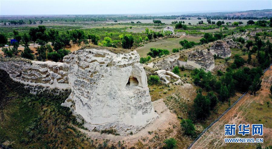 統(tǒng)萬城保留最完整的一段城墻遺址(5月30日攝,無人機照片)。