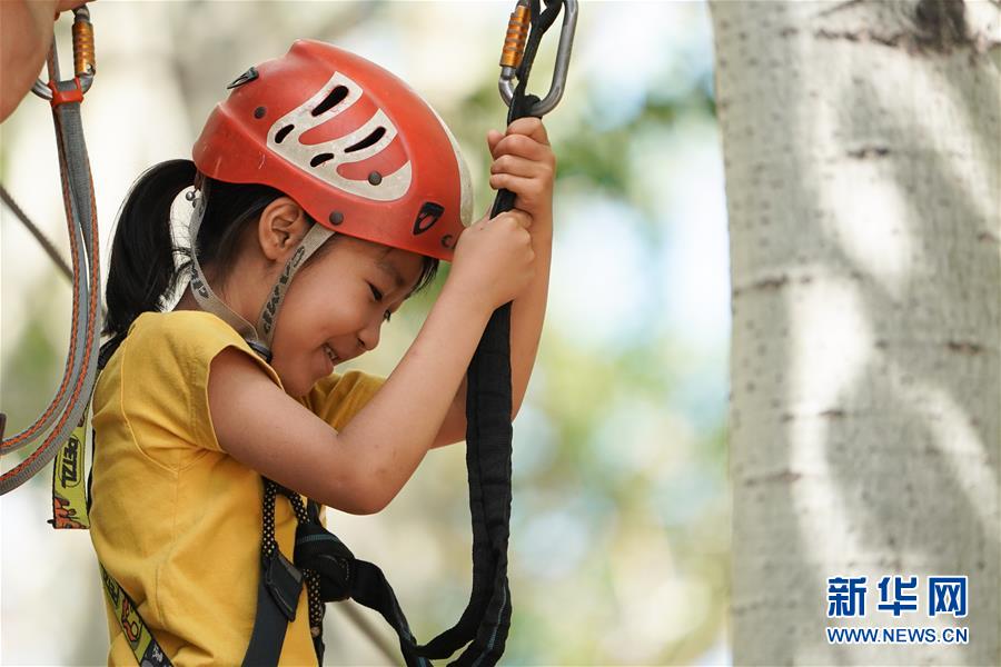 5月31日,小朋友在北京朝陽公園體驗戶外運(yùn)動。
