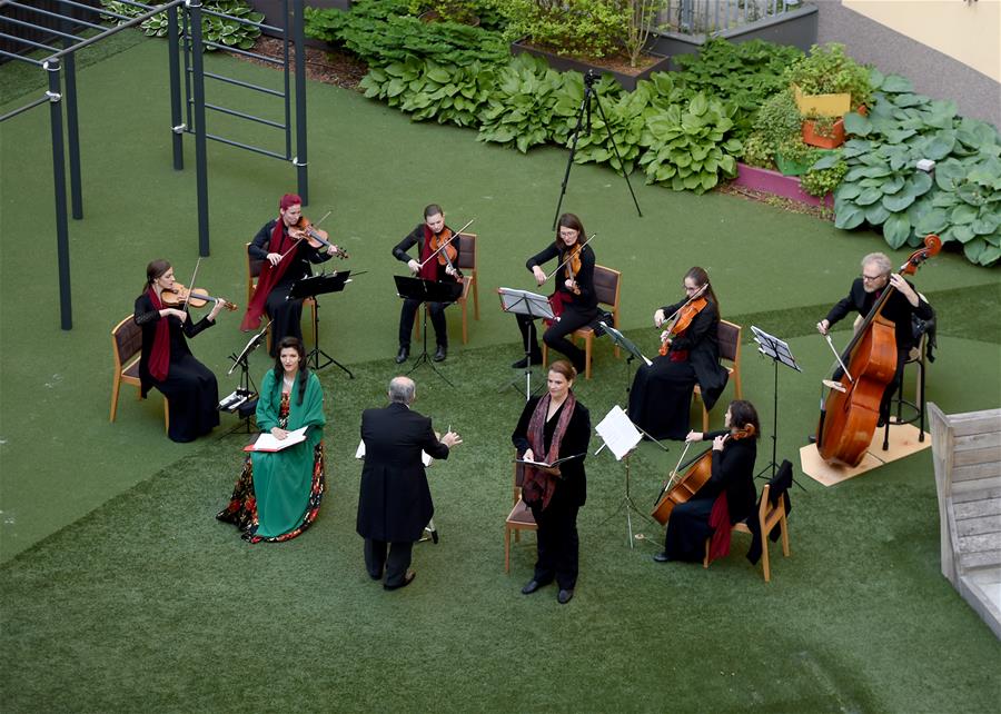 5月30日,在奧地利維也納“時代精神”酒店的庭院內,歌劇樂團為觀眾演出。當日,奧地利首都維也納的一家名為“時代精神”的酒店為迎接“解封”后恢復營業(yè),在其庭院內舉辦“窗口音樂會”。按照奧政府此前公布的“解封”時間表,從29日起,賓館酒店以及健身房、游泳池和游樂場等休閑娛樂場所有條件恢復運營。新華社記者郭晨攝