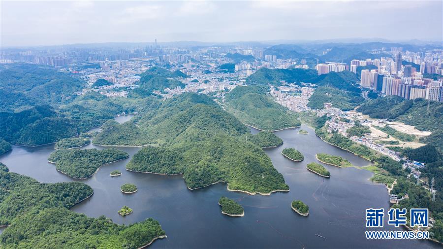 6月2日拍攝的貴陽(yáng)市阿哈湖國(guó)家濕地公園(無(wú)人機(jī)照片)。初夏時(shí)節(jié),貴州省貴陽(yáng)市阿哈湖國(guó)家濕地公園草木蒼翠,風(fēng)景如畫,吸引人們前來(lái)休閑游玩。新華社記者陶亮攝。