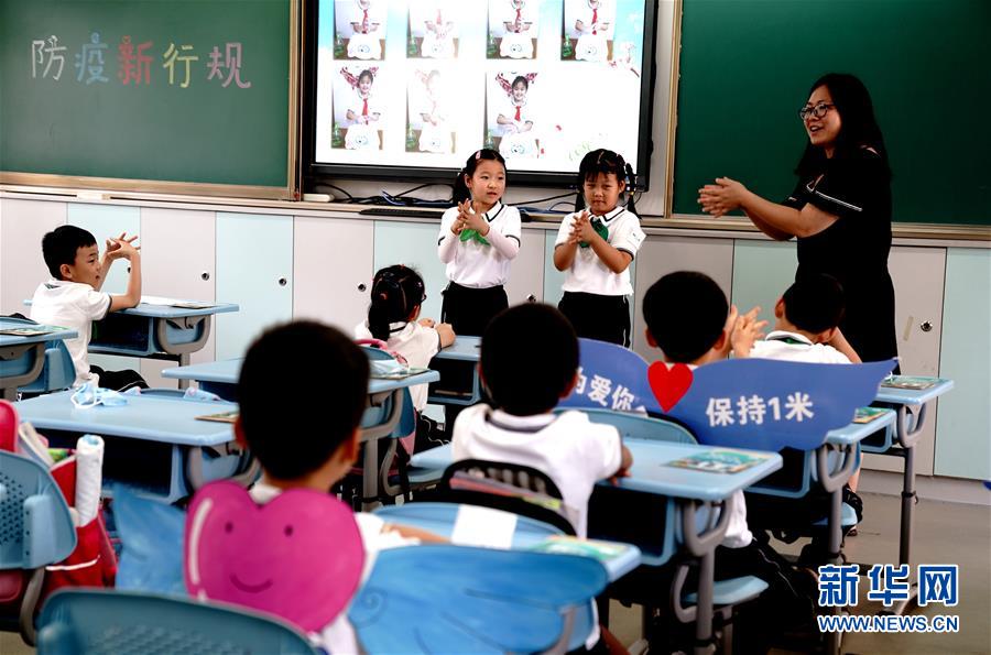 6月2日,上海閔行區(qū)鑫都小學(xué)的學(xué)生走進校園。當(dāng)日,上海小學(xué)一、二、三年級學(xué)生返校開學(xué)。新華社記者張建松攝。