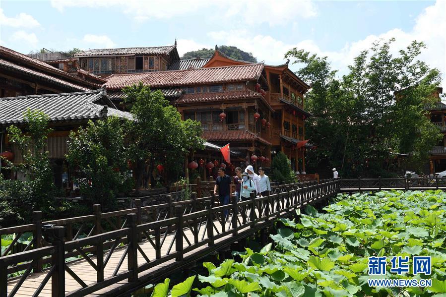 6月2日,游客在云南丘北縣普者黑仙人洞村游玩。新華社記者楊宗友攝。