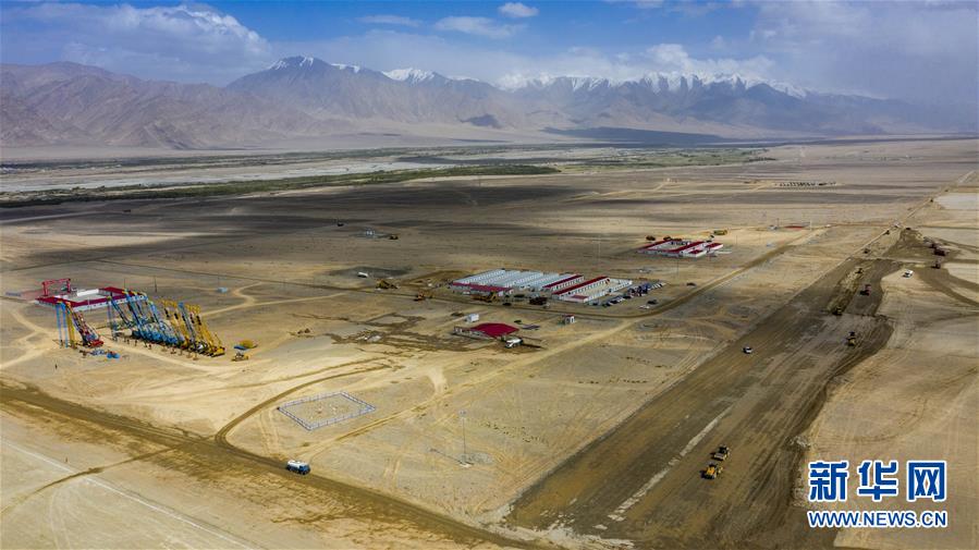 新疆塔什庫爾干機(jī)場(chǎng)施工現(xiàn)場(chǎng)(6月3日攝,無人機(jī)照片)。新華社記者胡虎虎攝。