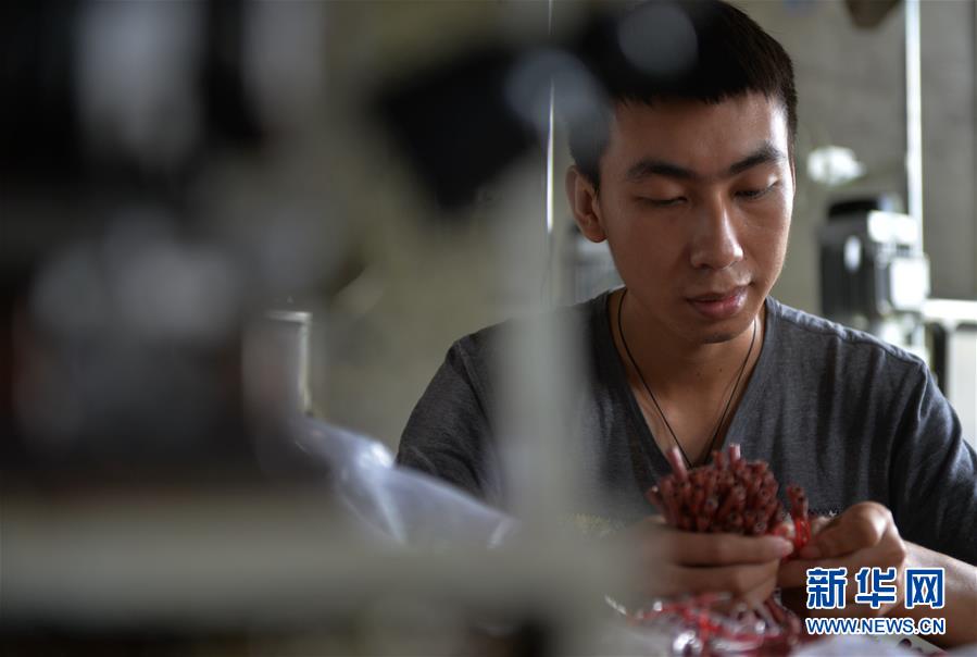 6月4日,一名工人在永州市新田縣一處易地搬遷集中安置點(diǎn)的扶貧車間里加工電器零部件。新華社記者趙眾志攝。