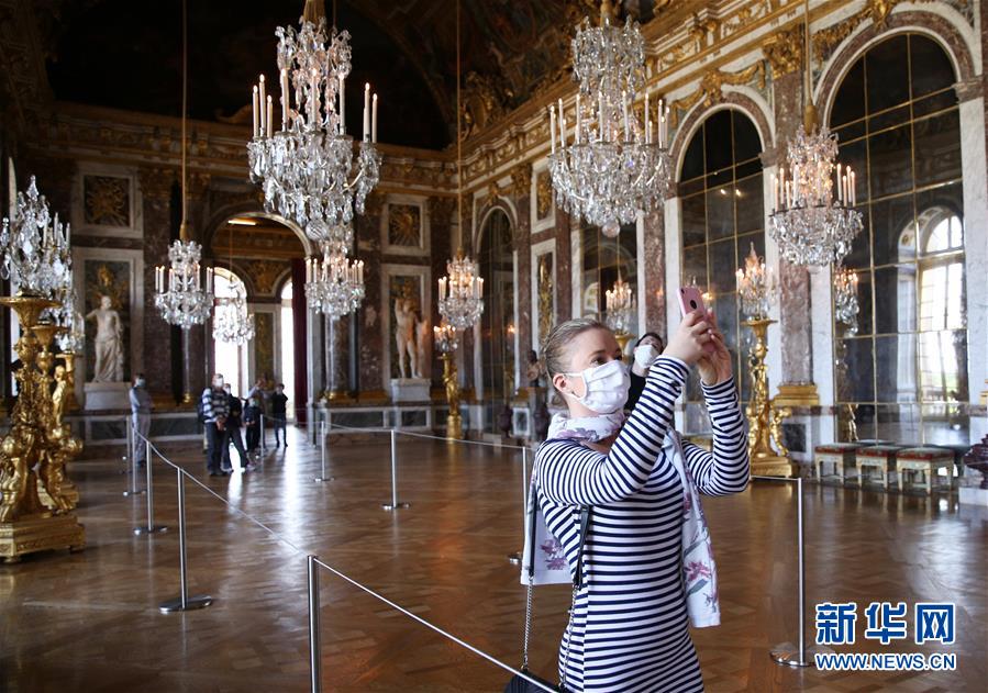 6月6日,游客在法國巴黎近郊凡爾賽宮的鏡廳內(nèi)參觀游覽。 新華社記者 高靜 攝