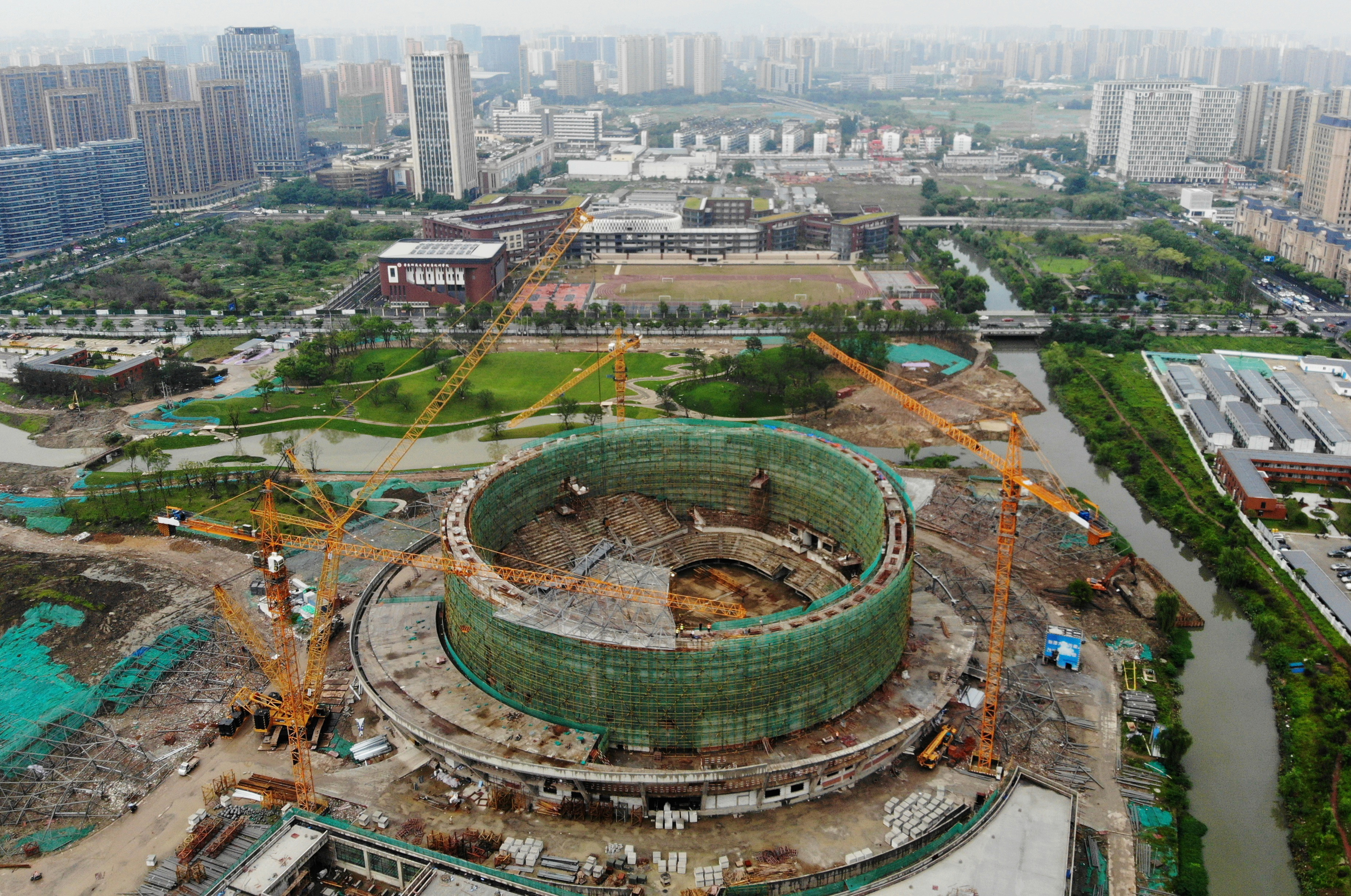 2020年6月9日,從空中俯瞰正在建設(shè)中的杭州亞運(yùn)會乒乓球館。