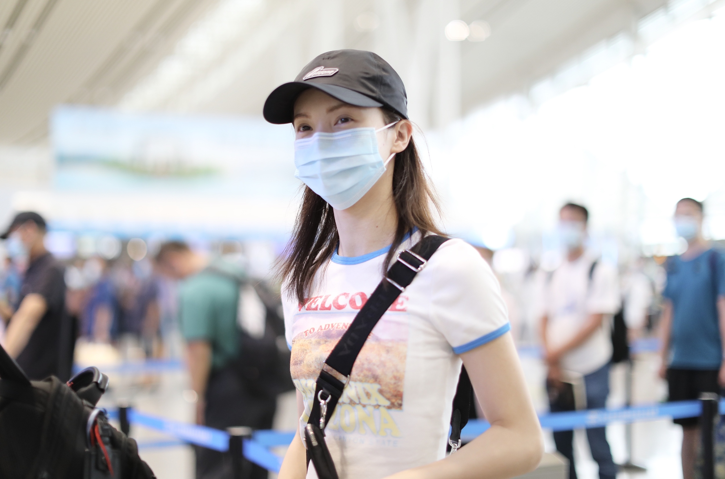 2020年6月9日,湖南長沙,金晨現(xiàn)身機(jī)場。大清早出現(xiàn)的她狀態(tài)不錯(cuò),戴著棒球帽身著超短白T,大秀水蛇腰及腰鏈,一路心情超好,更不時(shí)笑成月牙眼!