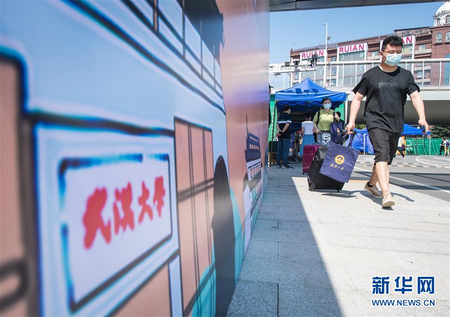 6月8日,在武漢大學,返校學生步入校園。6月8日起,武漢大學、華中科技大學、武漢理工大學、華中師范大學等多所武漢高校迎來首批返校畢業(yè)生。新華社記者肖藝九攝