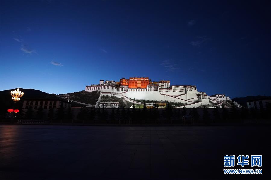 這是夜色中的布達(dá)拉宮(6月8日攝)。夜幕降臨,西藏拉薩布達(dá)拉宮燈光璀璨,夜景迷人。新華社記者詹彥攝