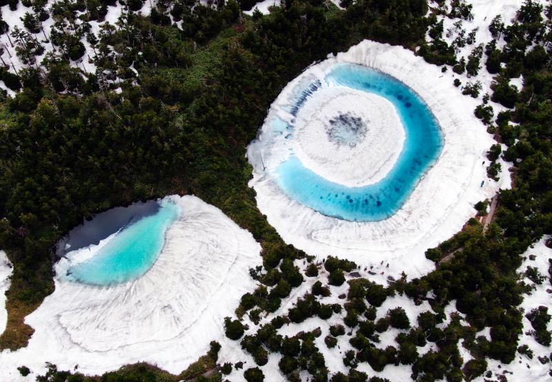 當(dāng)?shù)貢r間2020年6月8日,日本,在橫跨巖手縣與秋田縣的八幡平山頂附近的“鏡沼”,伴隨著“鏡沼”的積雪從外側(cè)逐漸融化,外圍的碧藍色湖水與中心部的潔白積雪相映成趣,呈現(xiàn)出獨特的類似“龍眼”的景象。據(jù)悉,八幡平“龍眼”奇景只在每年5月下旬至6月初的雪融期間短暫出現(xiàn)。