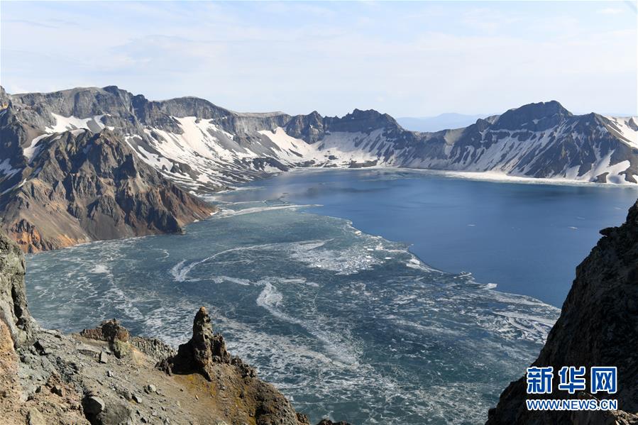 長白山天池迎來“開冰季”