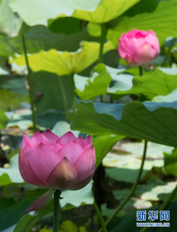 西湖曲院風(fēng)荷盛開的荷花(6月12日攝)。隨著氣溫升高,杭州西湖荷花次第開放,引得游人駐足。新華社記者翁忻旸 攝