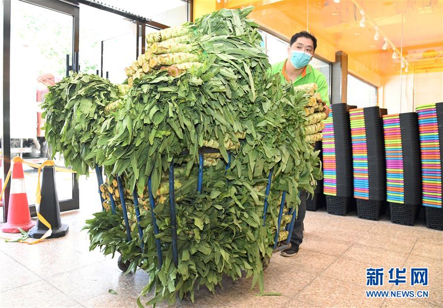 6月14日,在北京市海淀區(qū)的超市發(fā)雙榆樹(shù)店,工作人員在搬運(yùn)蔬菜。  新華社記者 任超 攝