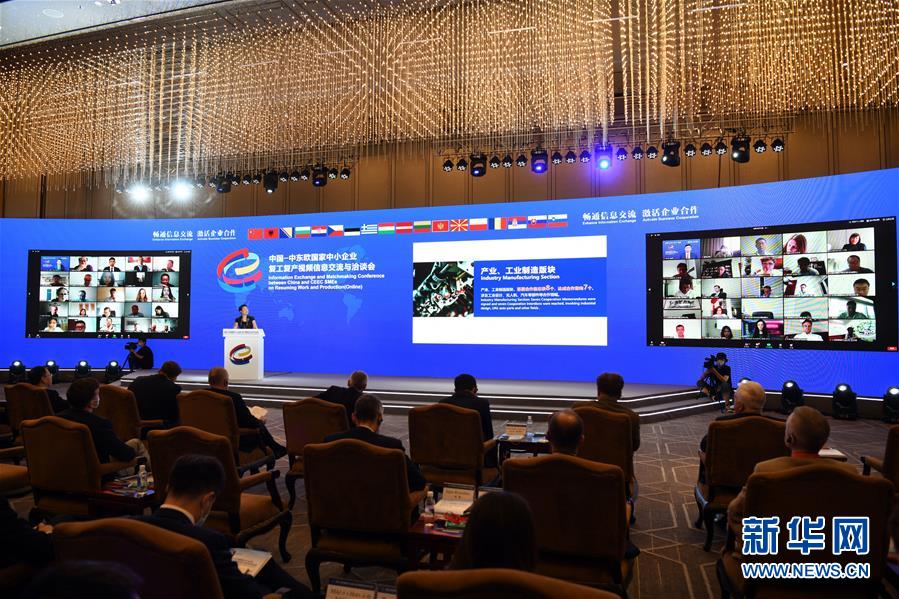 6月16日,中國-中東歐國家中小企業(yè)復工復產視頻信息交流與洽談會在北京舉行,河北省滄州市設分會場。本次會議以“暢通信息交流,激活企業(yè)合作”為主題,157家來自中國與135家來自17個中東歐國家的中小企業(yè)和機構圍繞“產業(yè)、工業(yè)制造”“貿易投資、農業(yè)”“旅游、人文交流”“醫(yī)療衛(wèi)生”四大版塊進行洽談對接。新華社記者 金良快 攝