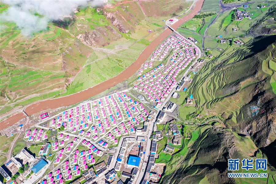 國道317線旁的一處易地扶貧搬遷點(6月14日攝,無人機(jī)照片)。新華社記者 田金文 攝