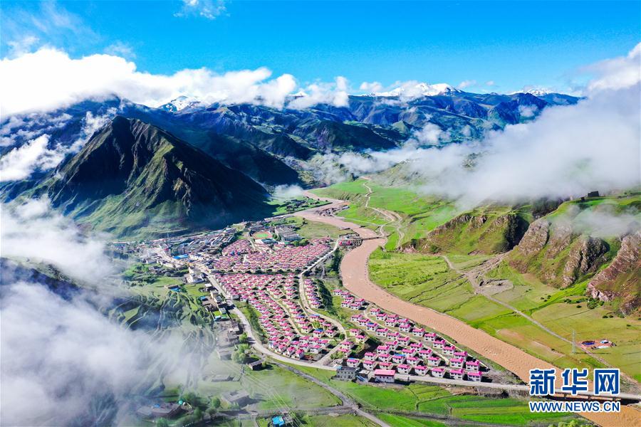 位于丁青縣嘎曲河畔的尺牘鎮(zhèn)易地扶貧搬遷點(6月14日攝,無人機照片)。新華社記者 白少波 攝