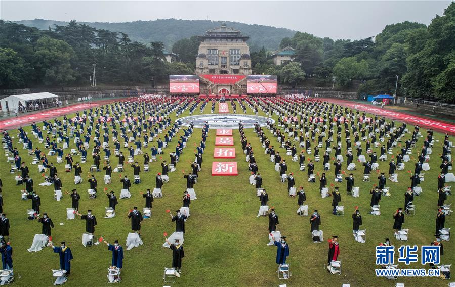 6月20日拍攝的武漢大學(xué)2020年畢業(yè)典禮現(xiàn)場(chǎng)。新華社記者 肖藝九 攝