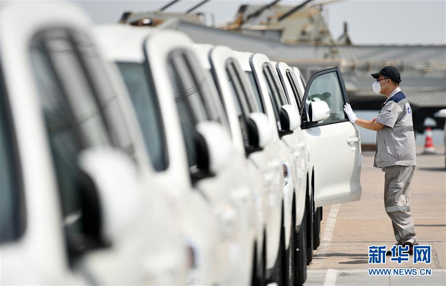 6月21日,司機(jī)在天津港環(huán)球滾裝碼頭接卸車輛后關(guān)門。當(dāng)日,裝載著數(shù)千輛平行進(jìn)口汽車的滾裝船順利停靠天津港環(huán)球滾裝碼頭,共接卸2600余輛豐田、日產(chǎn)等品牌的平行進(jìn)口汽車。今年前5個月,天津港集團(tuán)完成貨物吞吐量1.68億噸,集裝箱吞吐量689.5萬標(biāo)準(zhǔn)箱,分別同比增長1%和1.6%。新華社記者李然攝