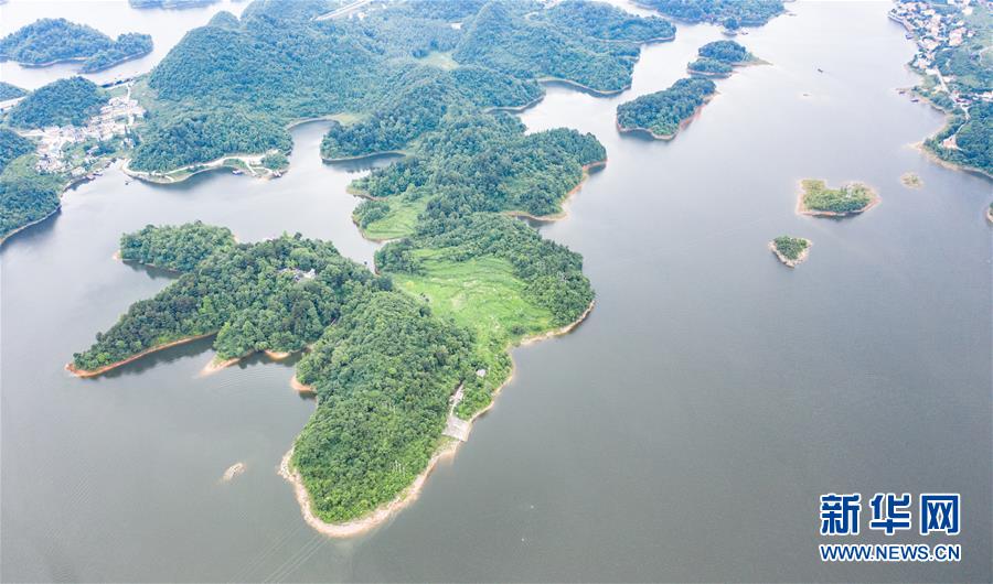 6月21日拍攝的紅楓湖景區(qū)風(fēng)光(無(wú)人機(jī)照片)。夏至?xí)r節(jié),貴州省清鎮(zhèn)市紅楓湖景區(qū)草木蒼翠,秀麗的湖光山色吸引不少游客前來(lái)游玩。新華社記者陶亮攝