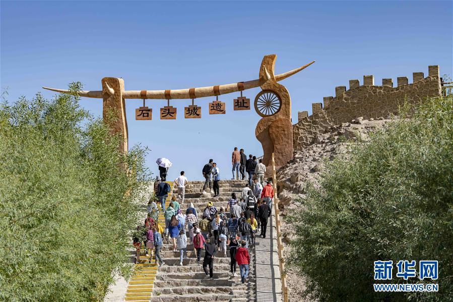 游客在新疆塔什庫(kù)爾干塔吉克自治縣石頭城遺址觀光游玩(6月21日攝)。新華社記者胡虎虎攝