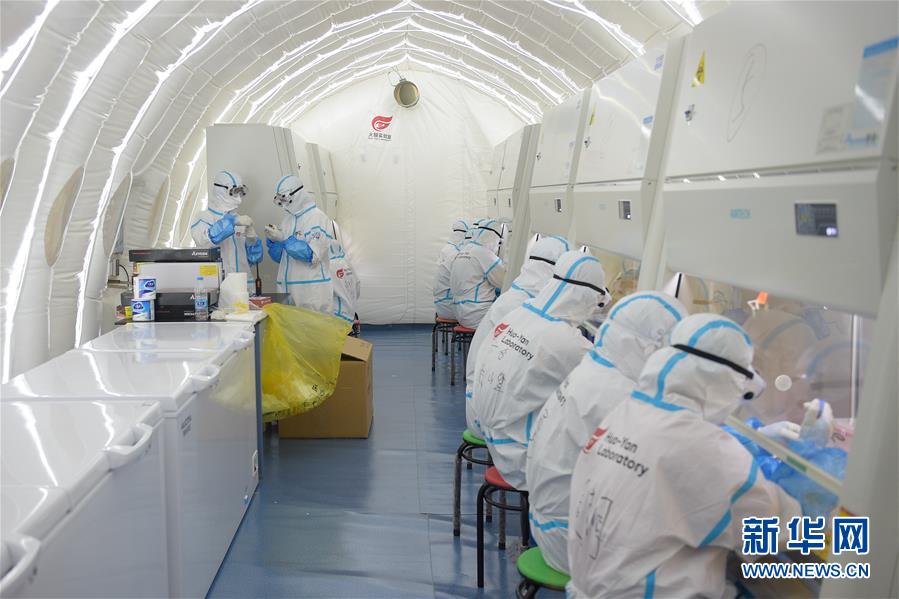 6月22日拍攝的建在北京大興體育中心綜合館的氣膜版“火眼”核酸檢測(cè)實(shí)驗(yàn)室。新華社記者彭子洋攝