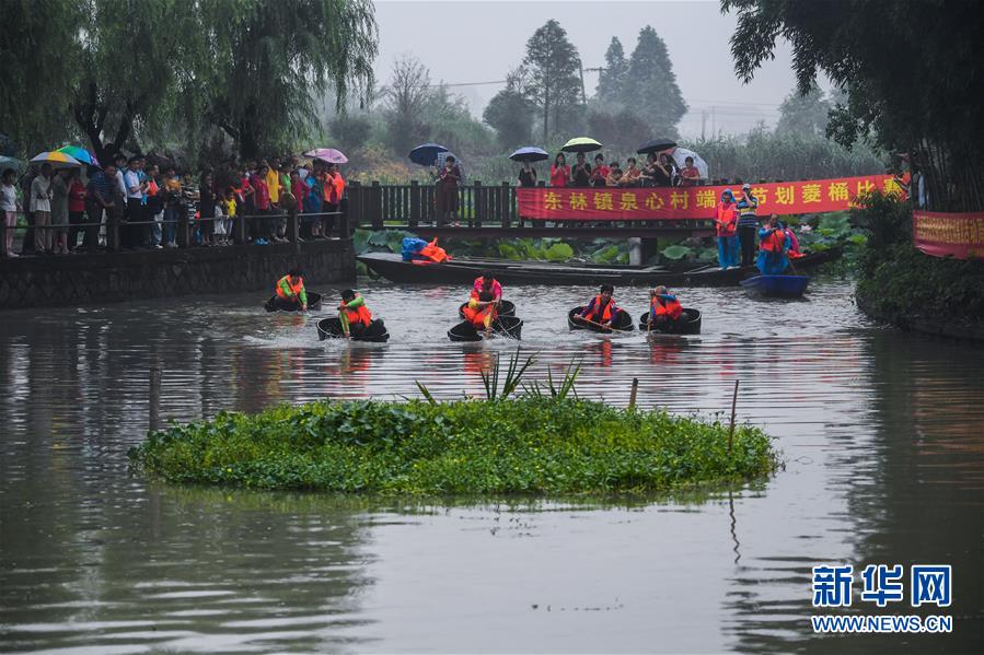 6月23日,東林鎮(zhèn)村民在泉心村荷花池參加端午劃菱桶趣味活動。當(dāng)日,浙江省湖州市東林鎮(zhèn)在泉心村荷花池舉辦“慶端午劃菱桶”趣味活動。村民們劃著菱桶在水面上你追我趕,同時(shí)采收荷花和蓮蓬,呈現(xiàn)出水鄉(xiāng)特有的端午節(jié)日氛圍。在河網(wǎng)密布的東林鎮(zhèn),菱桶是水鄉(xiāng)家家戶戶都有的一種傳統(tǒng)水上勞動工具,村民在捕魚、采菱、采荷時(shí)都要用到。新華社記者徐昱攝
