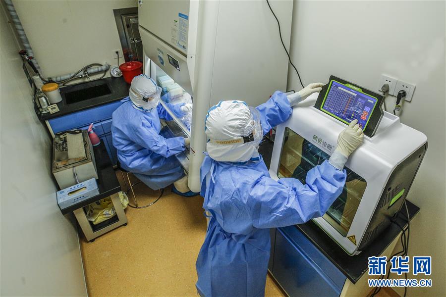 6月23日,兩位檢驗人員在實驗室內(nèi)工作。6月15日,北京市普仁醫(yī)院PCR實驗室正式啟用,并立即投入到新冠肺炎病毒核酸檢測工作之中,為新冠肺炎疫情防控增添利器。普仁醫(yī)院PCR實驗室啟用以來,除了來自本院發(fā)熱門診、門急診、病房和核酸檢測采樣點的樣本之外,還承接了社區(qū)以及東城區(qū)集中核酸檢測點采集的部分樣本。新華社記者張玉薇攝