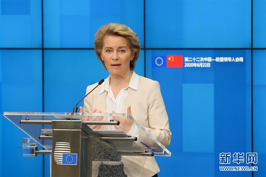 6月22日,歐盟委員會(huì)主席馮德萊恩在位于比利時(shí)布魯塞爾的歐盟總部出席第二十二次中國(guó)-歐盟領(lǐng)導(dǎo)人會(huì)晤后舉行的新聞發(fā)布會(huì)。