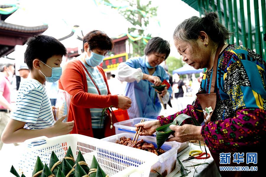 6月24日,游客在上海閔行區(qū)召稼樓古鎮(zhèn)一攤位學(xué)包粽子。當(dāng)日,“我們的節(jié)日·召樓粽情”2020年閔行浦江端午文化節(jié)開(kāi)幕。端午節(jié)臨近,各地舉行包粽子、做香包、賽龍舟等豐富多彩的民俗文化活動(dòng),迎接傳統(tǒng)佳節(jié)的到來(lái)。新華社記者張建松攝