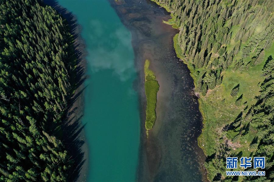 這是6月25日拍攝的新疆喀納斯景區(qū)風(fēng)光(無(wú)人機(jī)照片)。新華社記者 沙達(dá)提 攝