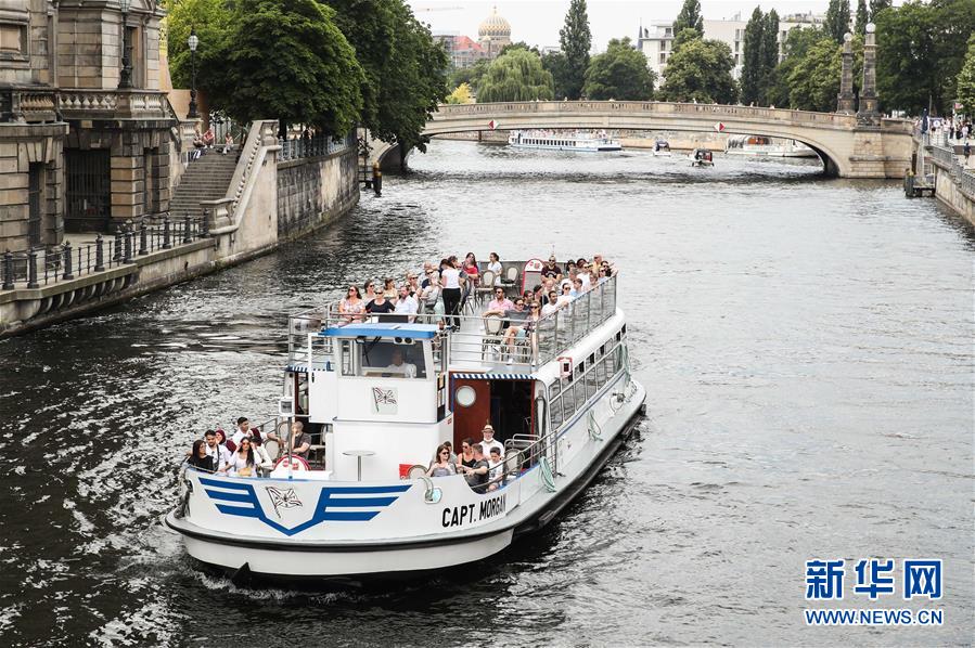 6月27日,在德國(guó)首都柏林,游客乘坐一艘游船觀光。新華社記者單宇琦攝