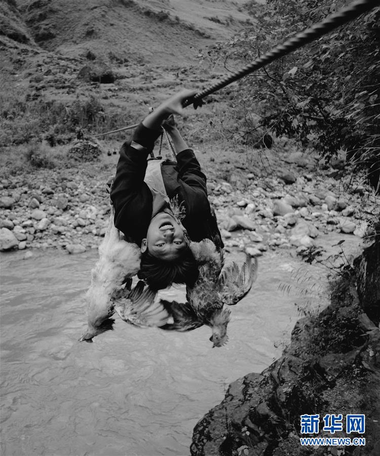 阿達(dá)色貴從阿布洛哈村用溜索過(guò)西溪河(2006年3月21日攝)。新華社發(fā)(林強(qiáng)攝)