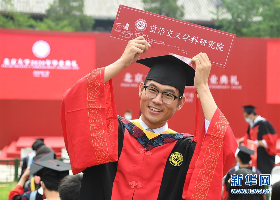 7月2日,北京大學(xué)2020屆畢業(yè)生在畢業(yè)典禮結(jié)束后拍照留念。當(dāng)日,北京大學(xué)舉行2020年畢業(yè)典禮。由于疫情防控需要,今年的典禮在北京大學(xué)辦公樓西側(cè)廣場、靜園草坪、未名湖等九個會場舉行,并面向全球進(jìn)行中英文雙語直播,僅部分在校畢業(yè)生現(xiàn)場參加,更多畢業(yè)生通過線上直播參與畢業(yè)典禮。新華社記者任超攝