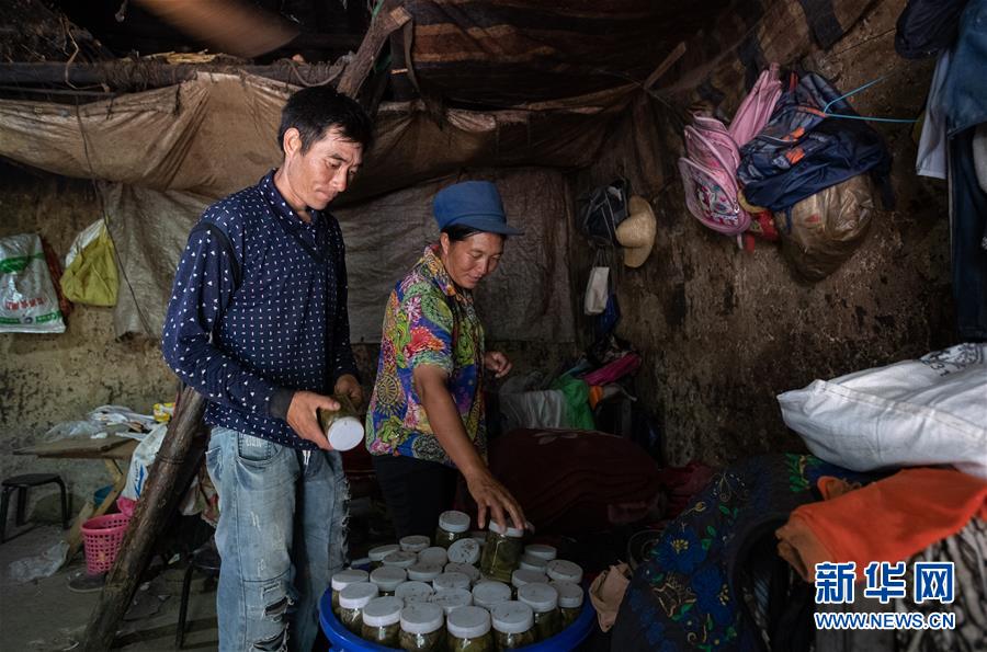 且沙次干、阿達么日雜夫婦倆在老房子里收拾制作的泡菜(6月27日攝)。當天他們把老房子里的糧食、家什等收拾一番,準備搬進村集中安置點的新居。新華社記者 江宏景 攝