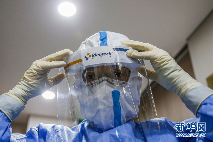 7月3日,中日友好醫(yī)院檢驗(yàn)科新冠核酸檢測(cè)實(shí)驗(yàn)室的檢驗(yàn)人員閆克芹在進(jìn)入污染區(qū)前穿戴防護(hù)裝備。新華社記者張玉薇攝