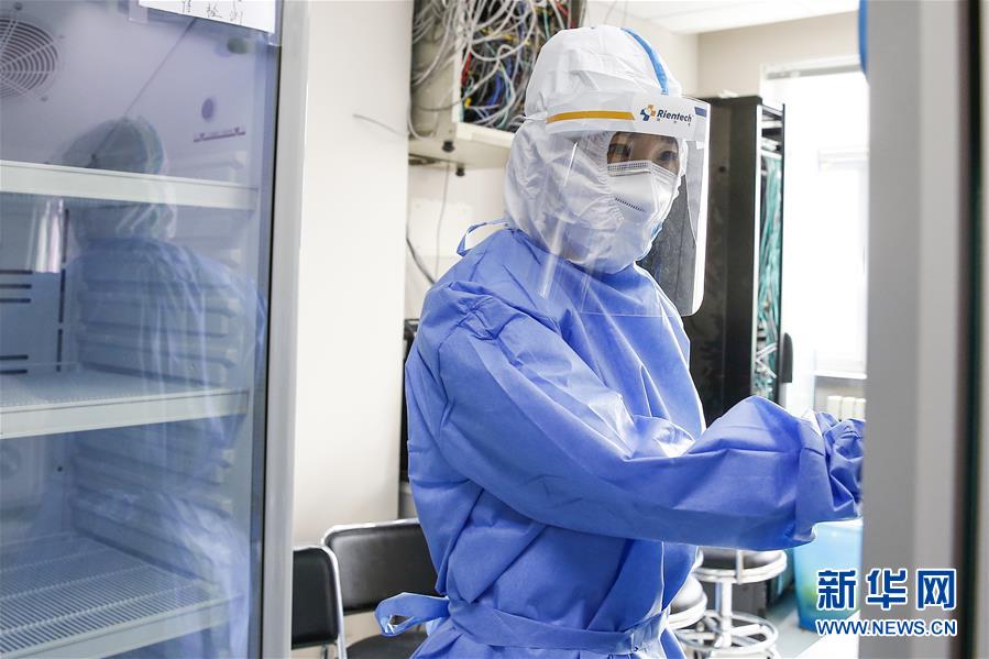 7月3日,中日友好醫(yī)院檢驗(yàn)科新冠核酸檢測(cè)實(shí)驗(yàn)室的檢驗(yàn)人員張?chǎng)卧趯?shí)驗(yàn)室內(nèi)查看樣本。新華社記者張玉薇攝